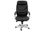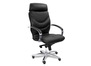 Кресло для руководителя LEEDS CHROME A кожа+кож.зам. №38308 - высота спинки: 74 см, высота от пола до сиденья: 50-57 см, диаметр крестовины: 72 см, ширина спинки: 53 см, объем: 0,37 м3, вес: 25 кг, механизм качания без фиксации, регулировка жесткости качания по весу сидящего, ограничения по весу: 150 кг, основание: металл, каркас: немонолитный, подголовник, подлокотники, поясничный упор, регулировка по высоте, резиновые колеса для паркета, в наличии в Уссурийске.